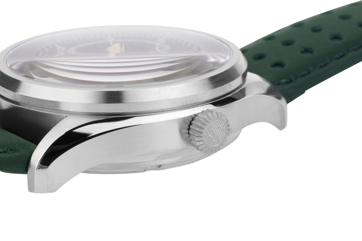 Стекло сапфировое немного выпуклое с антибликом. Циферблат имеет песчаную фактуру темно-синего цвета (Pantone303U), метки 3D типа люминофор Super Luminova Old Radium. Стрелки IPG, брашировка. покрыты люминофором Super Luminova Old Radium. Часы комплектуются тревел-кейсом из кожи, с лого.
