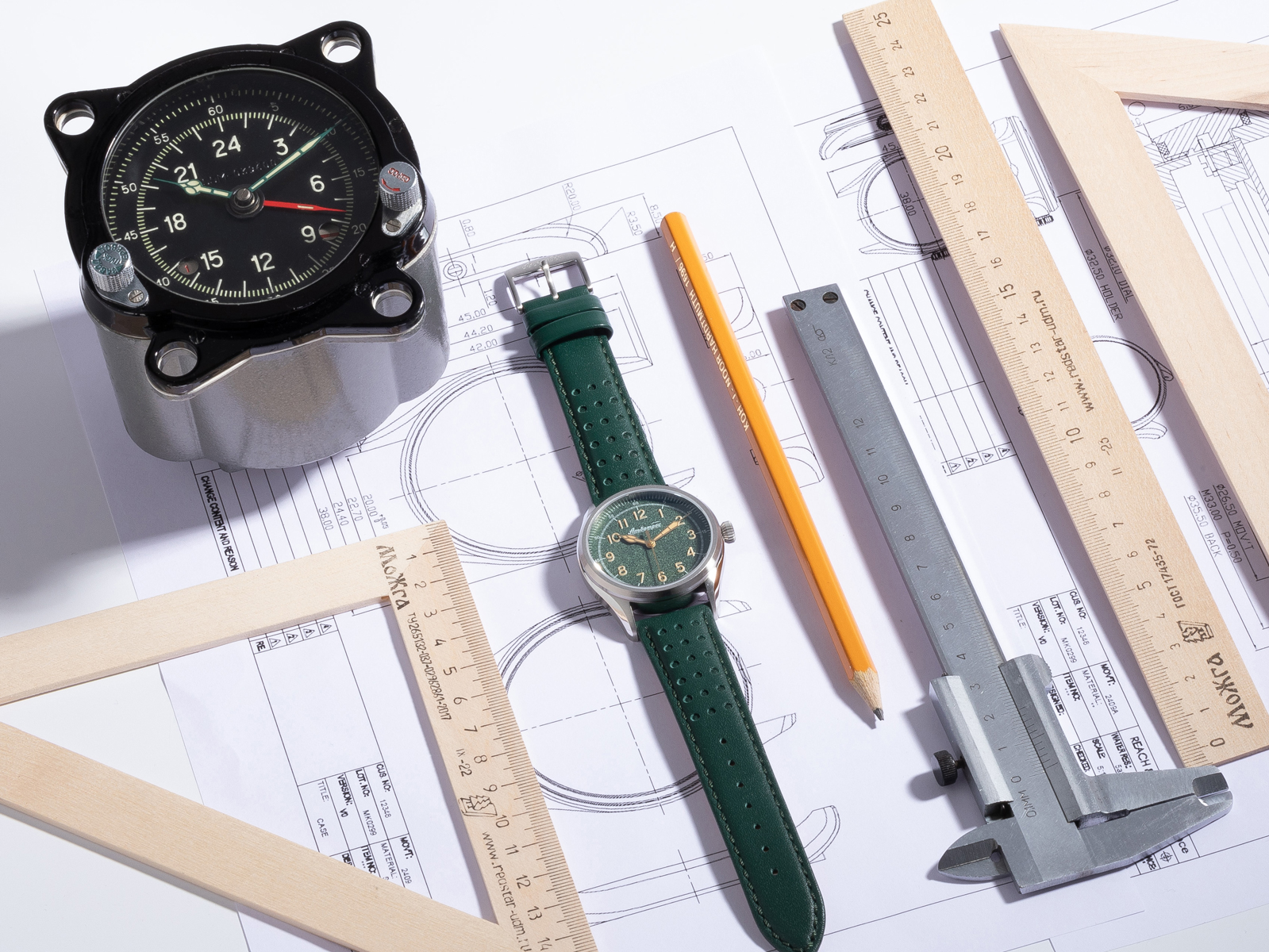 Дизайнерское решение было продиктовано Авиационным часовым прибором 55М использовавшегося в армейской авиации. Это 2 исполнение в меньше размере.