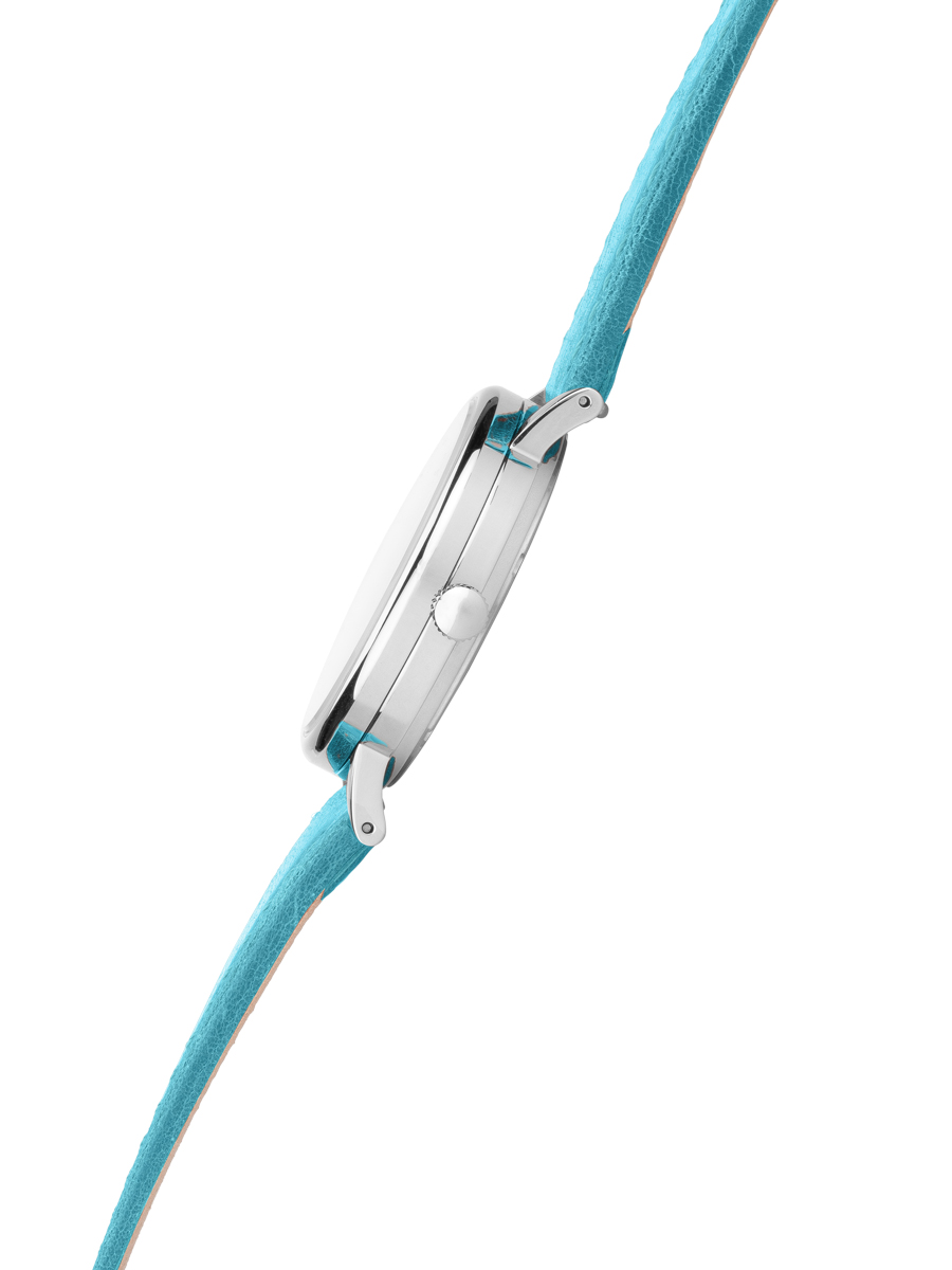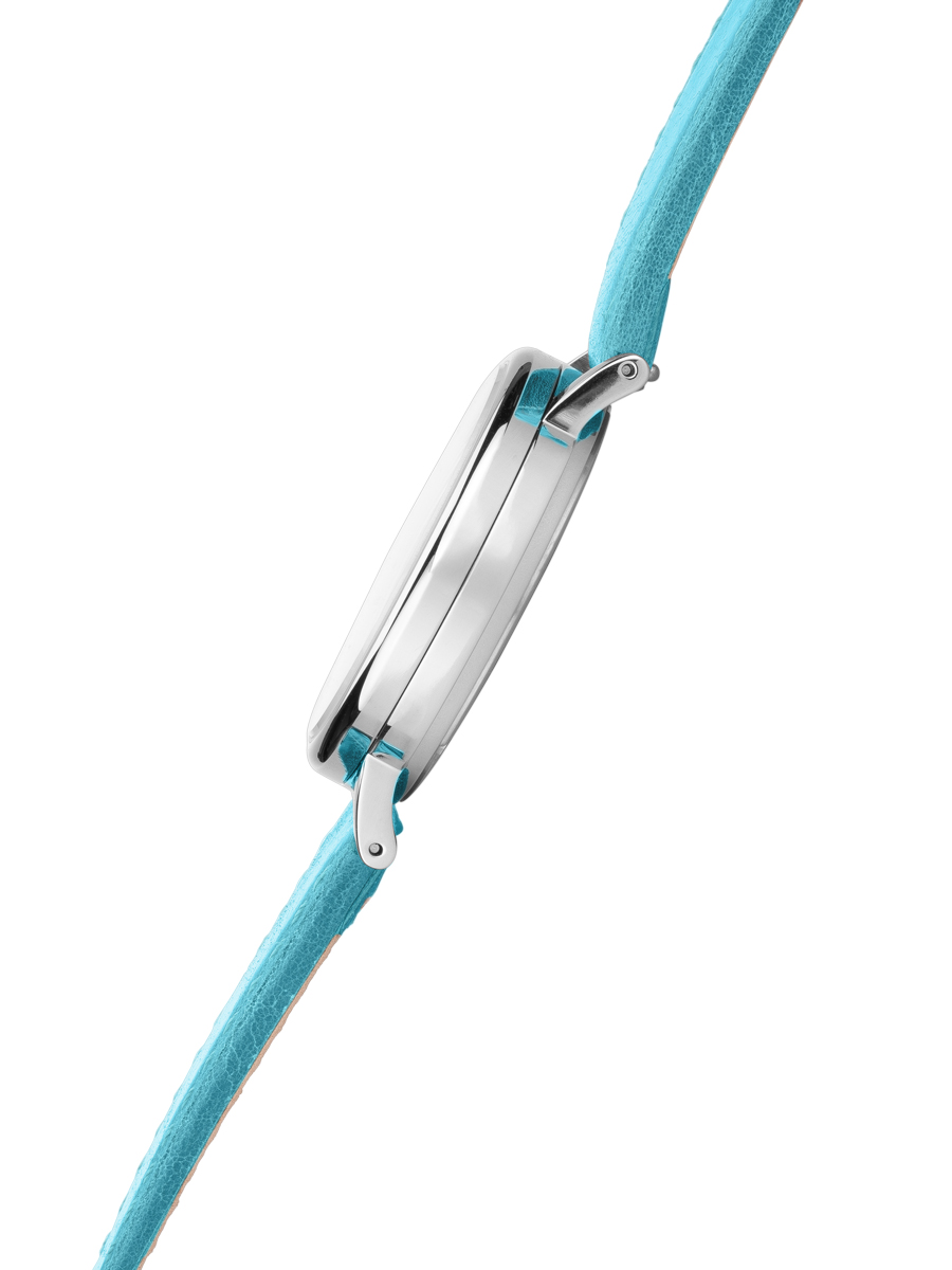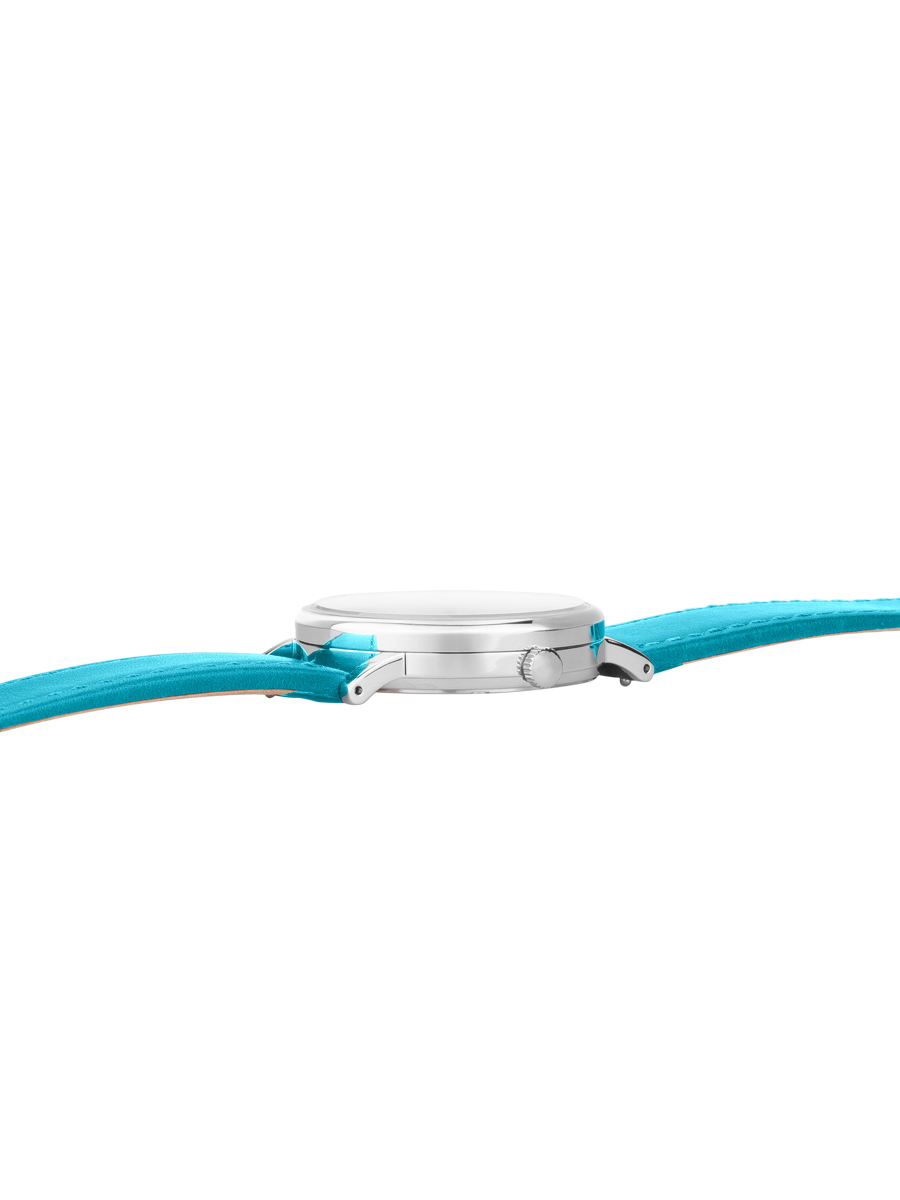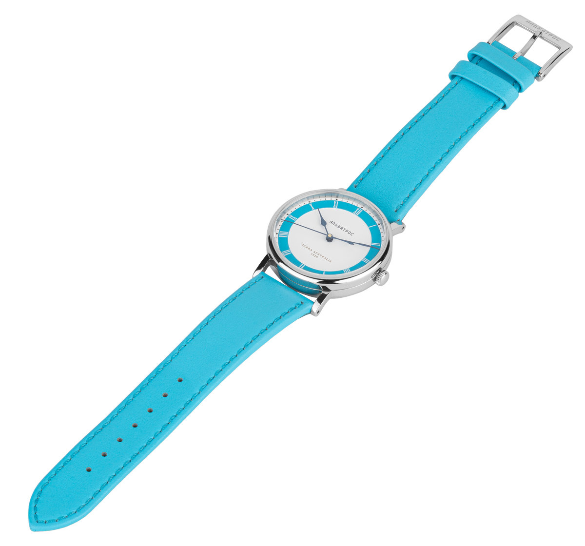 Базовая палитра — это холодный блеск полированной стали корпуса, глубокий синий блеск термически обработанных стальных стрелок, золотой акцент в центре циферблата и снежный цвет матовой окраски циферблата. И, конечно же, классическая черная тампопечать шкал и индексов.