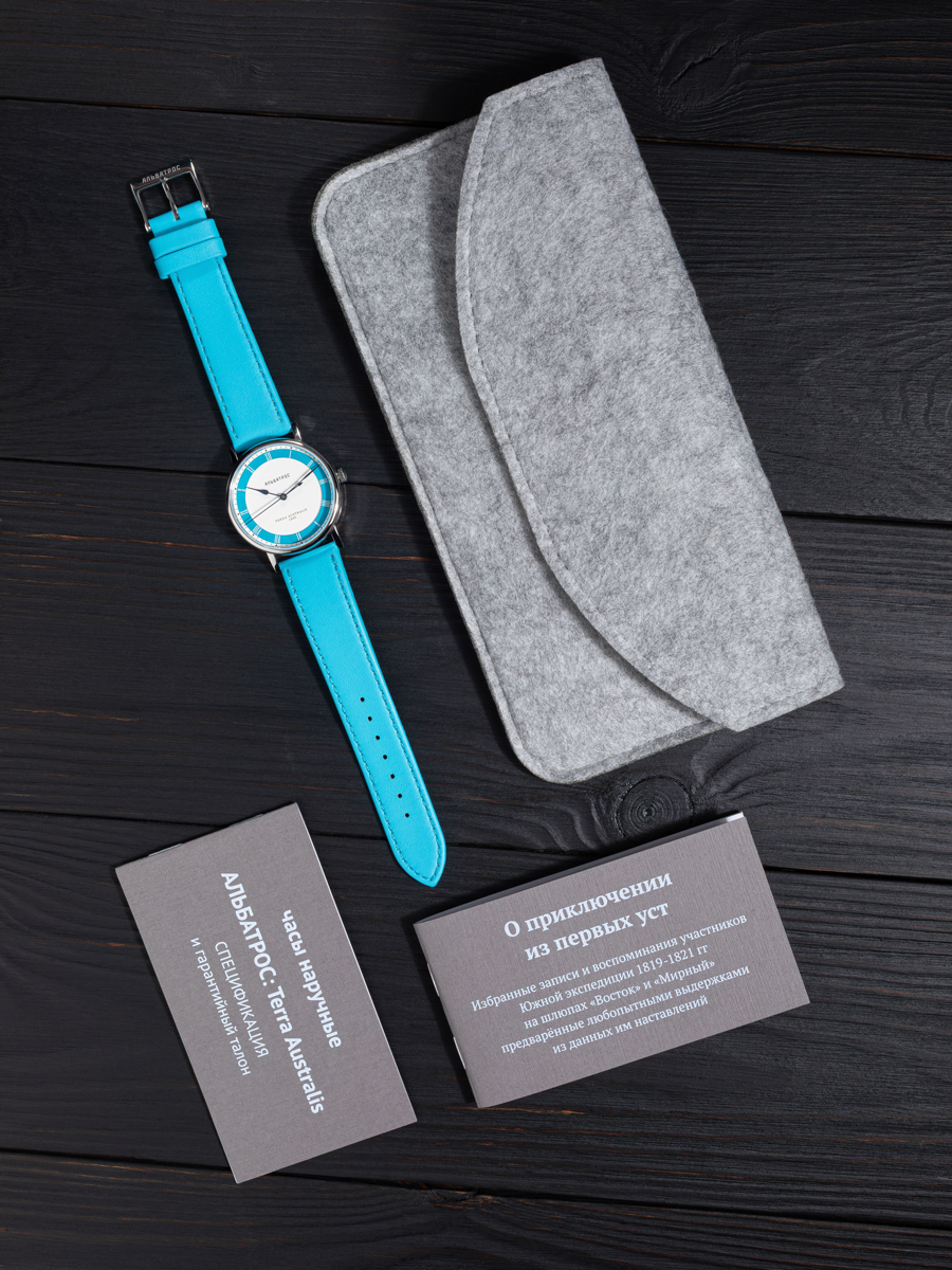 Часы Альбатрос Terra Australis придуманы и сделаны в память о большом и очень рискованном приключении, в которое отправил русских моряков император Александр I. Речь о «Южной экспедиции» на шлюпах «Восток» и «Мирный» под командованием Ф.Ф. Беллинсгаузена и М.П. Лазарева в 1819-1821 годах. Сейчас её называют «Первая русская антарктическая экспедиция». Тогда предполагаемый на юге материк называли не Антарктидой, это название стали применять много десятилетий спустя. Искомую гипотетическую землю называли Terra Australis на латыни, языке науки тех времен. Русские моряки звали её просто «южная земля».